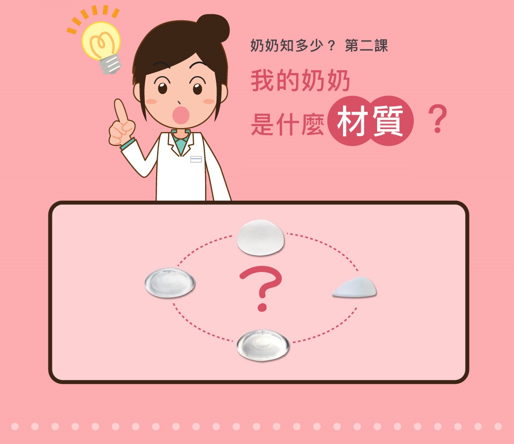 目前已上市的義乳材質分為下列幾項: 1.鹽水袋隆乳: 2.傳統矽膠隆乳: 3.果凍矽膠隆乳: 4.絨毛果凍隆乳: 5.水滴型果凍隆乳: 6.魔D隆乳(魔滴隆乳): 這麼多種材質該怎麼選擇?