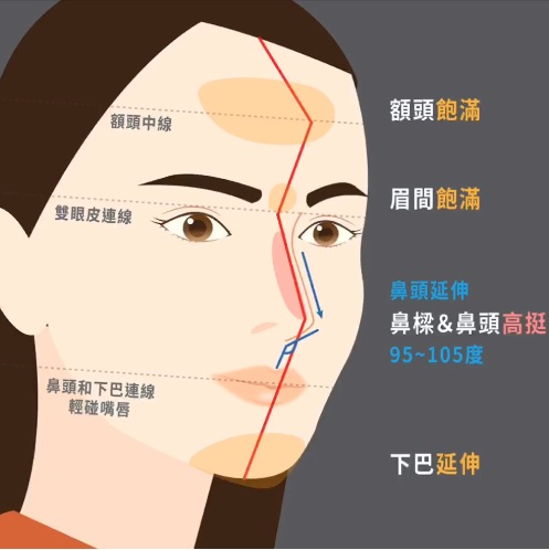 鼻子是臉部的視覺中心,亞洲人普遍山根扁塌鼻梁不夠挺,客製化讓妳美出新角度。