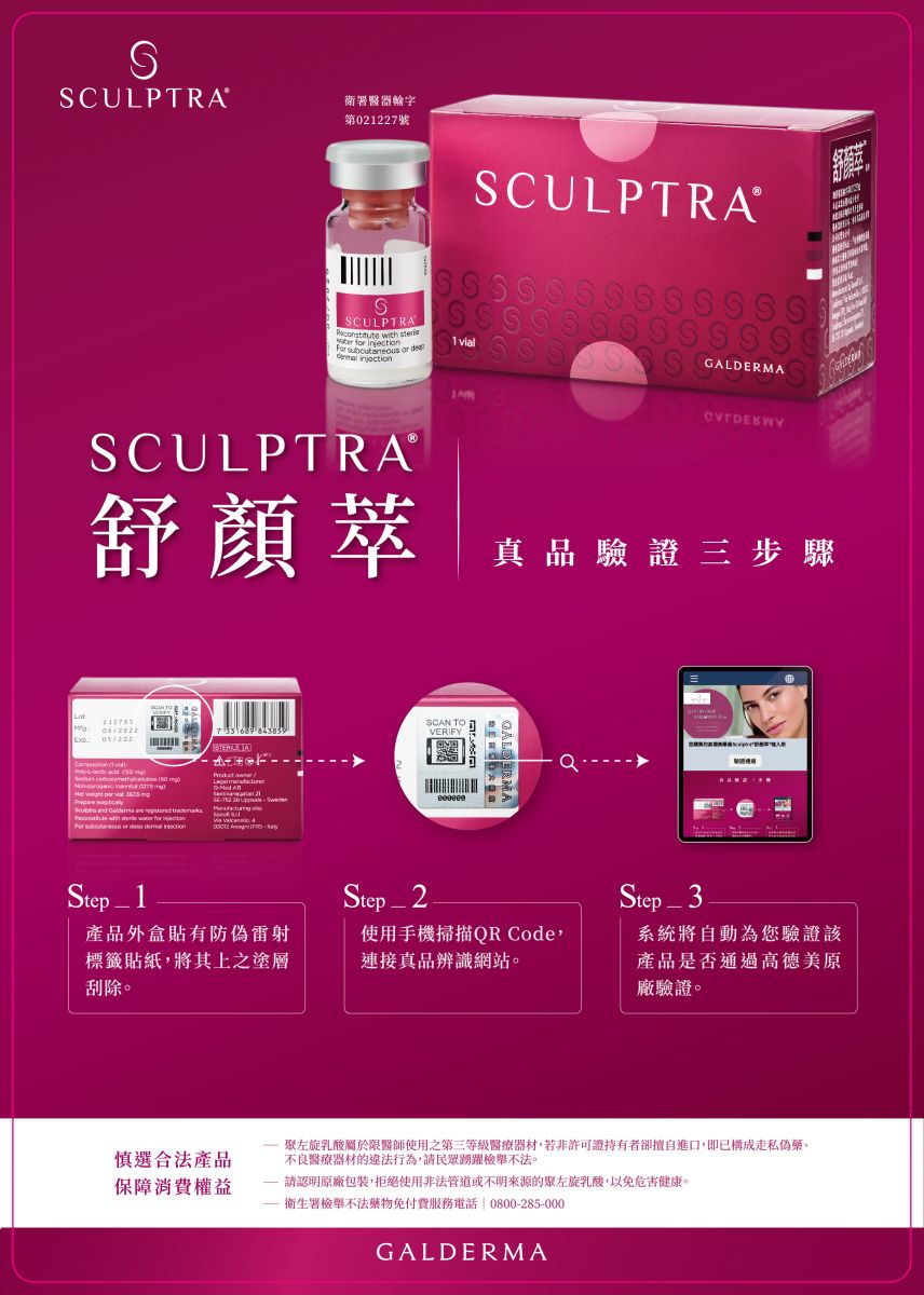 新包裝於2023年2月開始供貨 舒顏萃 Sculptra (4D童妍針)真品驗證三步驟: