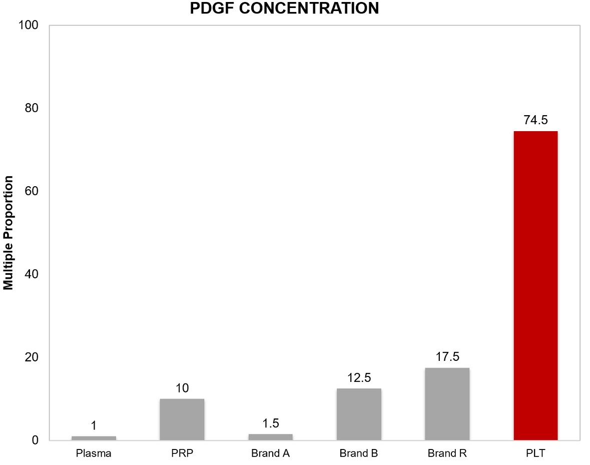 經專利製程的PLT其生長因子 (PDGF-BB)濃度是傳統PRP的7.5倍