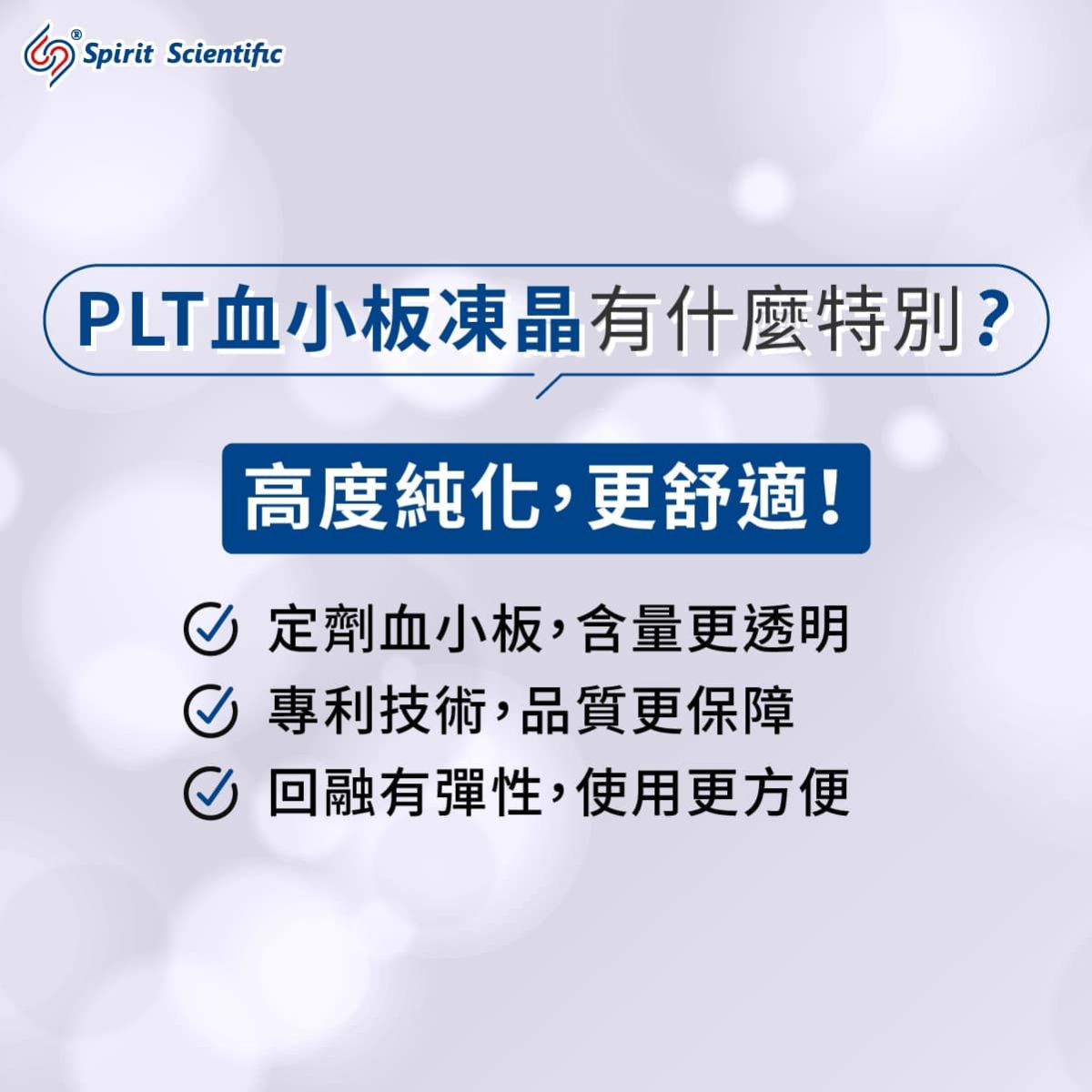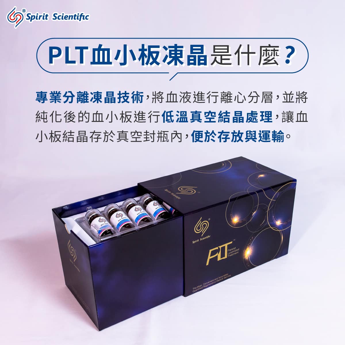 PLT 為新型態血小板精煉技術從高濃度血小板血漿 (PRP) 中萃取最有效成分。以定劑定量,濃度明確之純化血小板;並以冷凍乾燥技術,充分去除血小板成品中水分與其他不需要的成分,在真空狀態下封裝安瓶而成PLT凍晶製品。其命名來自Platelet(血小板)簡稱,同時 PLT 也是 Platelet-Lyophilized Treatment (血小板凍眠術) 三個英文單字的第一個字母組合。