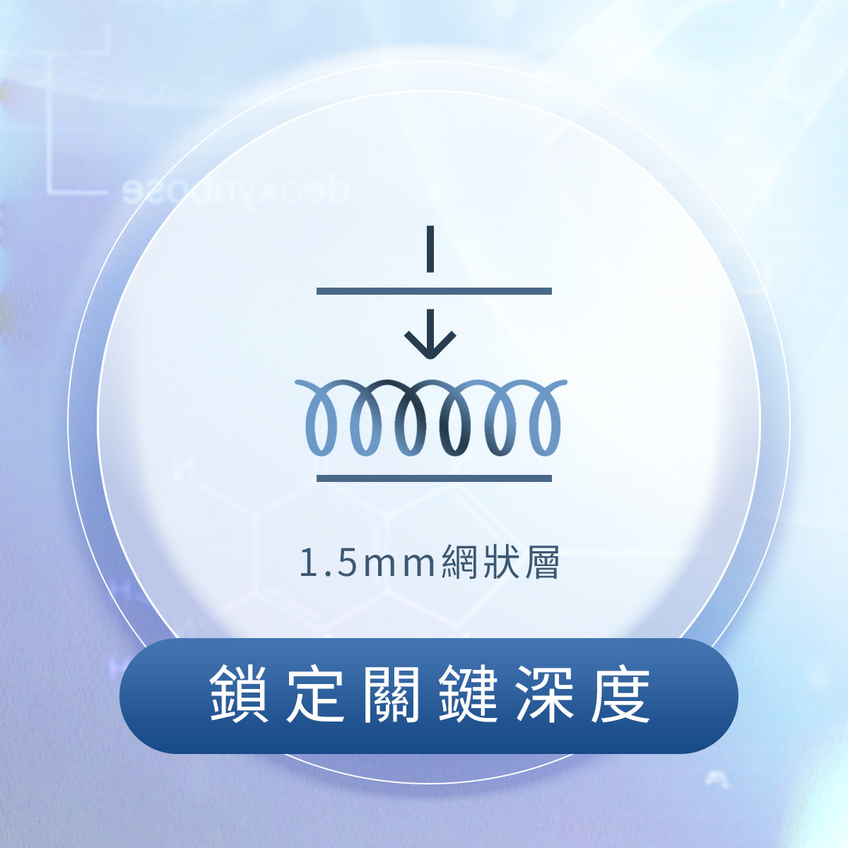 肌膚分為許多層級,並由不同組織所構成。其中位於真皮層下層的『網狀層』佔了真皮層中80%的體積,是肌膚支撐力的來源,同時為膠原蛋白和彈力蛋白的主要產地,是維持彈潤肌膚功不可沒的角色。