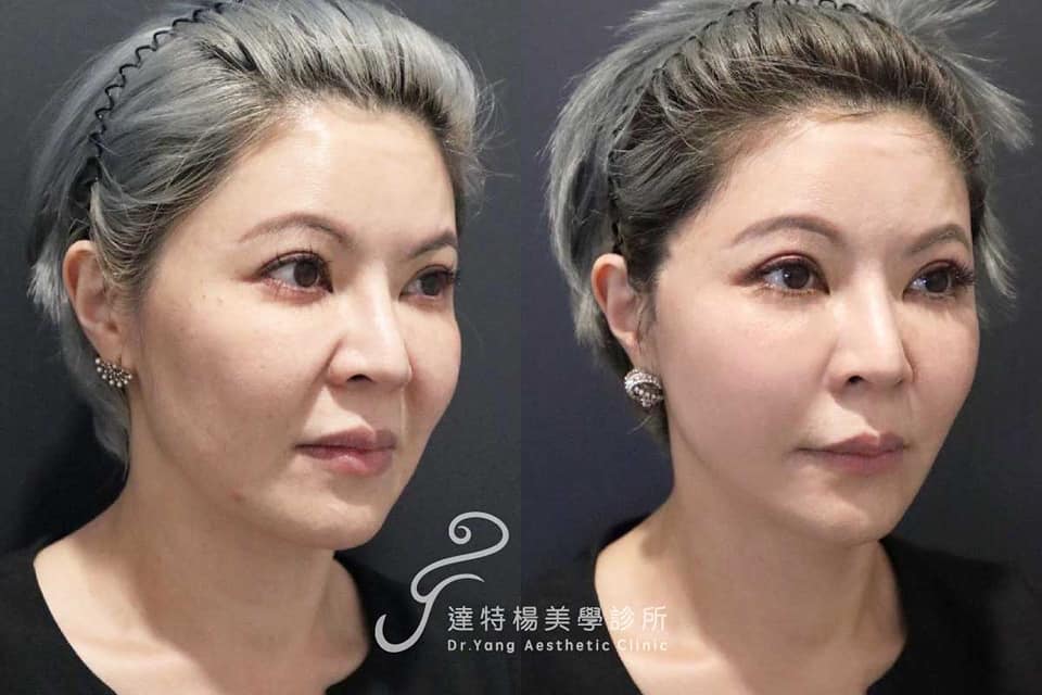 可以通過適度的拉提線固定技術將下垂部位提升+微量填充