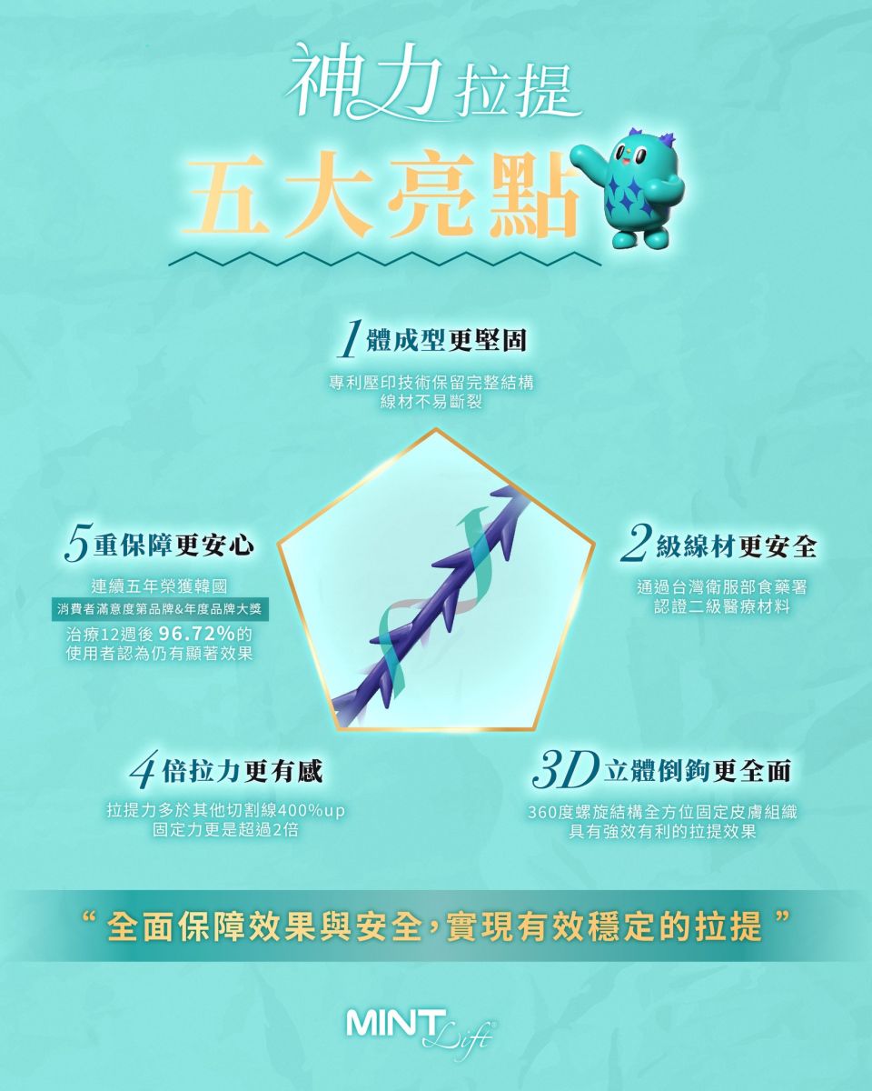 MINT LIFT 神力拉提(韓士秘特拉提線)五大優勢: