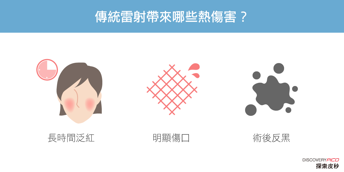 探索皮秒雷射之所以比前一代的奈秒雷射(或稱淨膚雷射)更不容易反黑或反黑時間更短,就是因為從奈秒進化到皮秒,一來縮短了1000倍雷射接觸皮膚的時間,二來皮秒雷射是機器震波而非熱能,這個瓶頸的突破,就是它對醫美科技的貢獻。