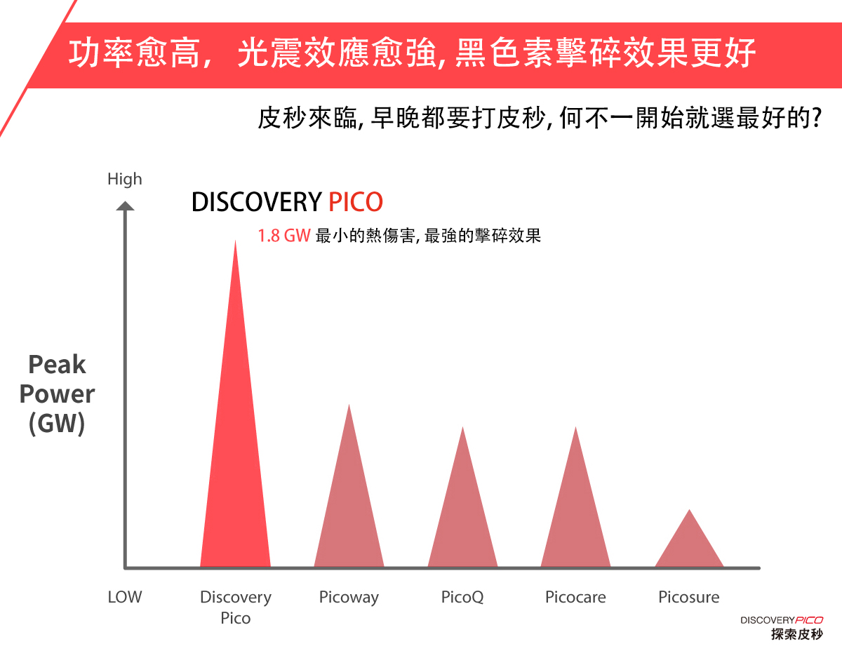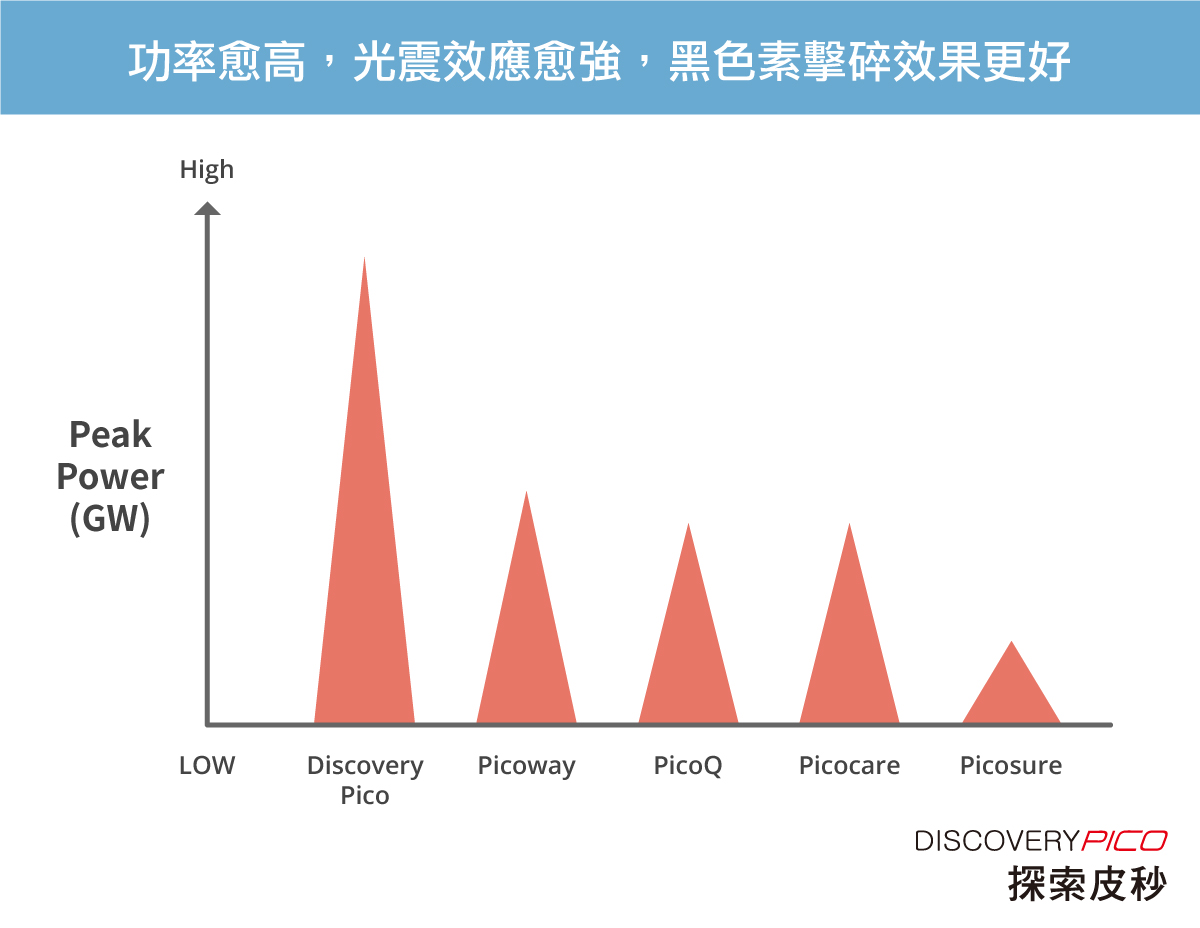 功率愈高,光震效應愈強,黒色素擊碎效果更好!