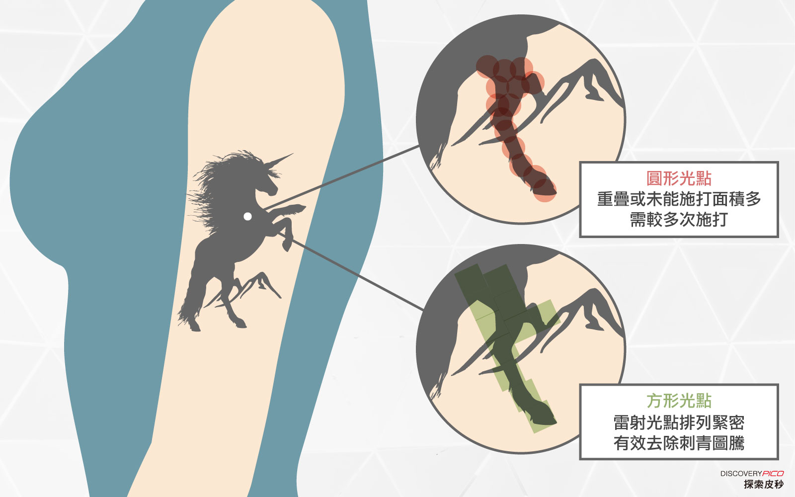 皮秒在治療黑色素的效能本來就很好,且雙波皮秒有著1064nm與532nm二種波長,多色刺青涵蓋範圍廣,所以應用在清除單色(多色)刺青上的表現,也是優等生呦!