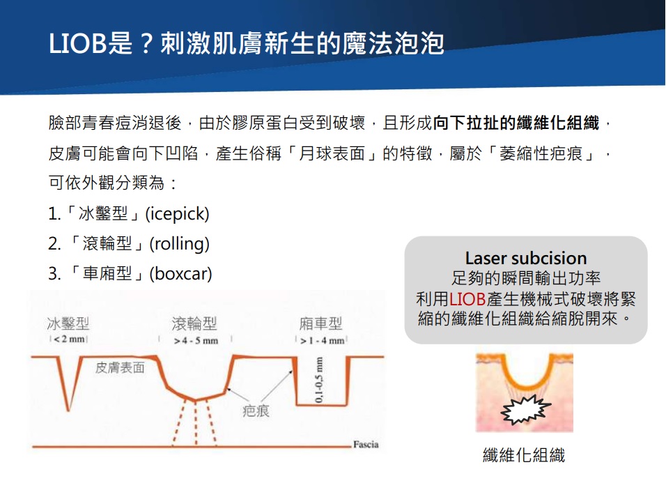 →1.以空泡化效應由內而外破壞痘疤下的纖維化組織細胞。