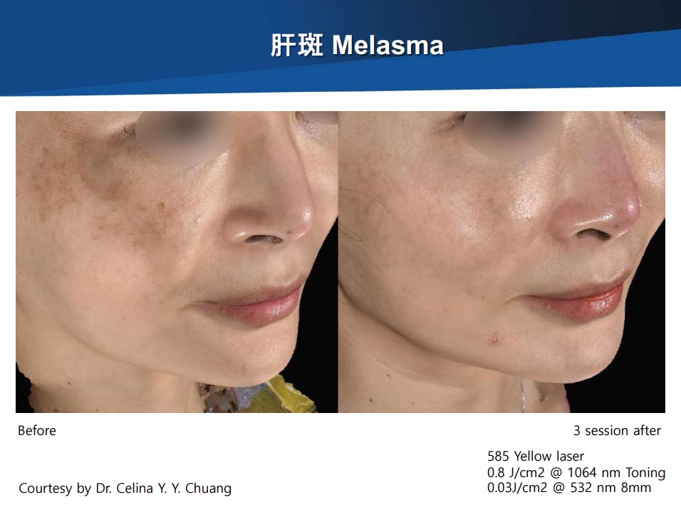 肝斑僅能淡化以及延緩復發,無法根治,請與您的醫師討論是否需要合併其他治療,在專業醫師的協助下達到最佳的治療效果。