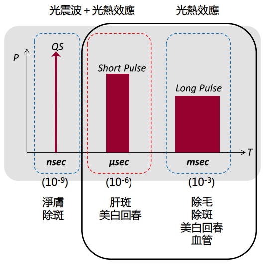 使用長脈衝, 熱能累積更多, 對皮膚緊緻/縮毛孔效果更好.