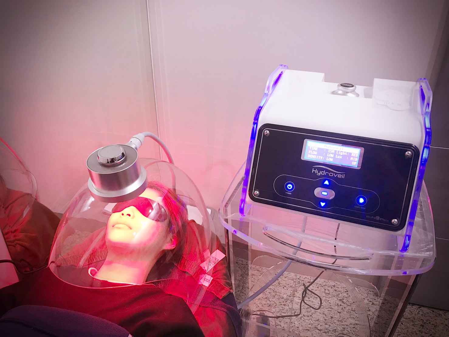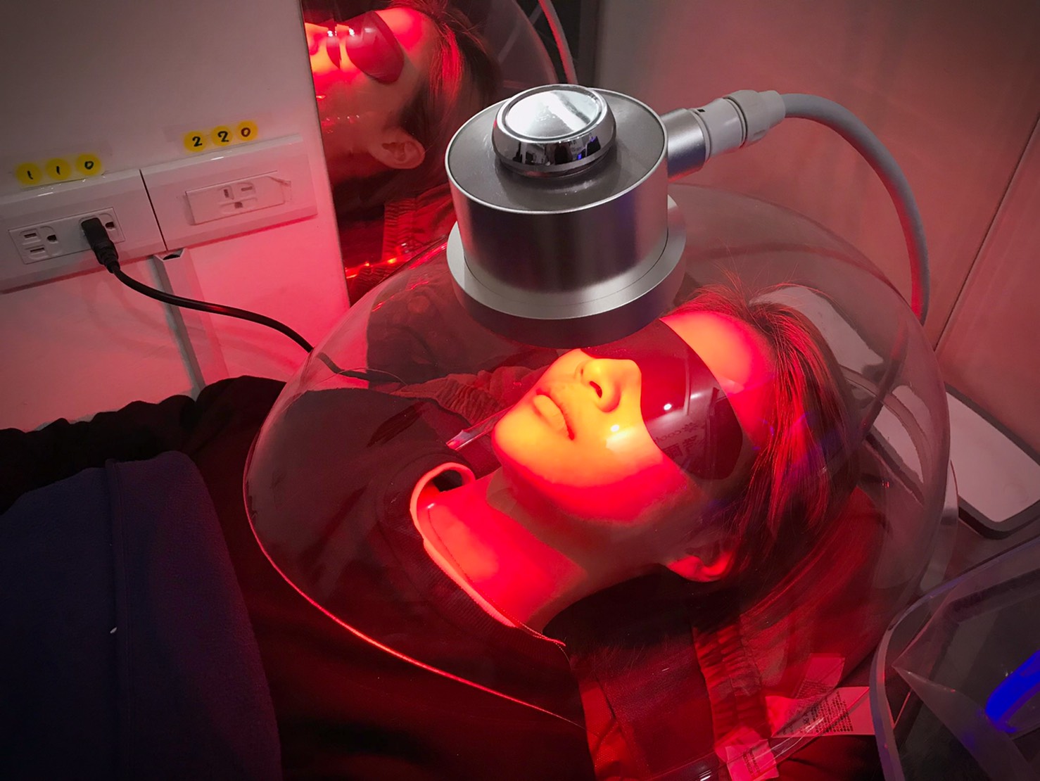 療程時間大約15-20分,會根據您的狀況挑選適合的光譜(有藍光和紅光)。整個過程可以很放鬆的躺著,面罩內會噴出氫氣和舒服放鬆的香味。平常壓力大的客人都很喜歡這個療程,變美放送一舉數得^^