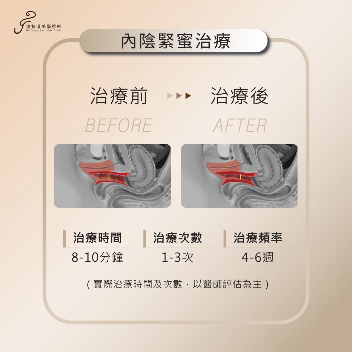 外陰會有立即澎潤緊實效果,內陰則緊實和包覆度增加,建議療程後1-3個月評估內外陰症狀改善。
