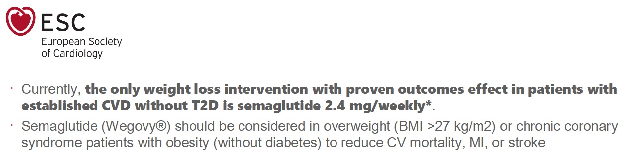 Wegovy® 是唯一列入 2024 ESC CCS 指引的減重藥物