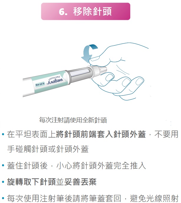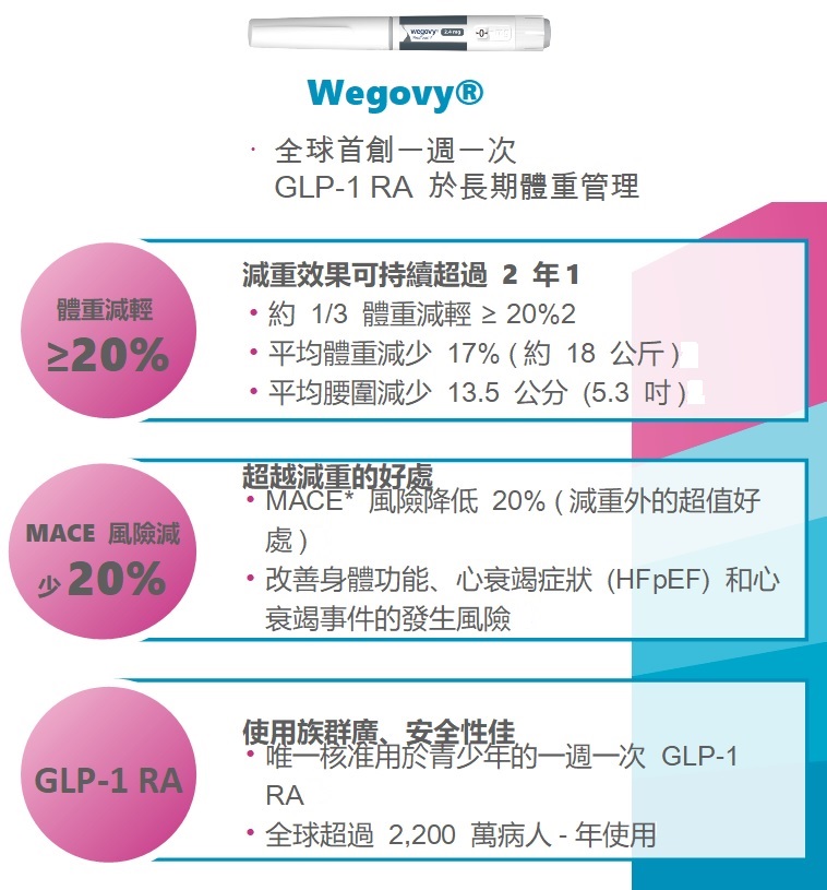 參考: Wegovy® 注射劑衛生福利部核准仿單