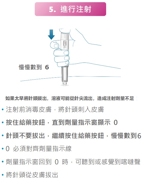A:錯過一劑藥物,應在 5 天內儘快施打,超過 5 天則應跳過,依原訂時程繼續注射下一劑。