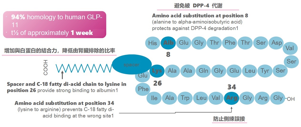 1.做為低熱量飲食及增加體能活動之輔助療法,適用對象為成人且初始身體質量指數 (BMI) 為≥30 kg/m2 (肥胖),或≥27 kg/m2 至 <30 kg/m2 (過重) 且至少患有一項體重相關共病,例如血糖異常 (糖尿病前期或第二型糖尿病)、⾼血壓、血脂異常、阻塞性睡眠呼吸中止或心血管疾病。