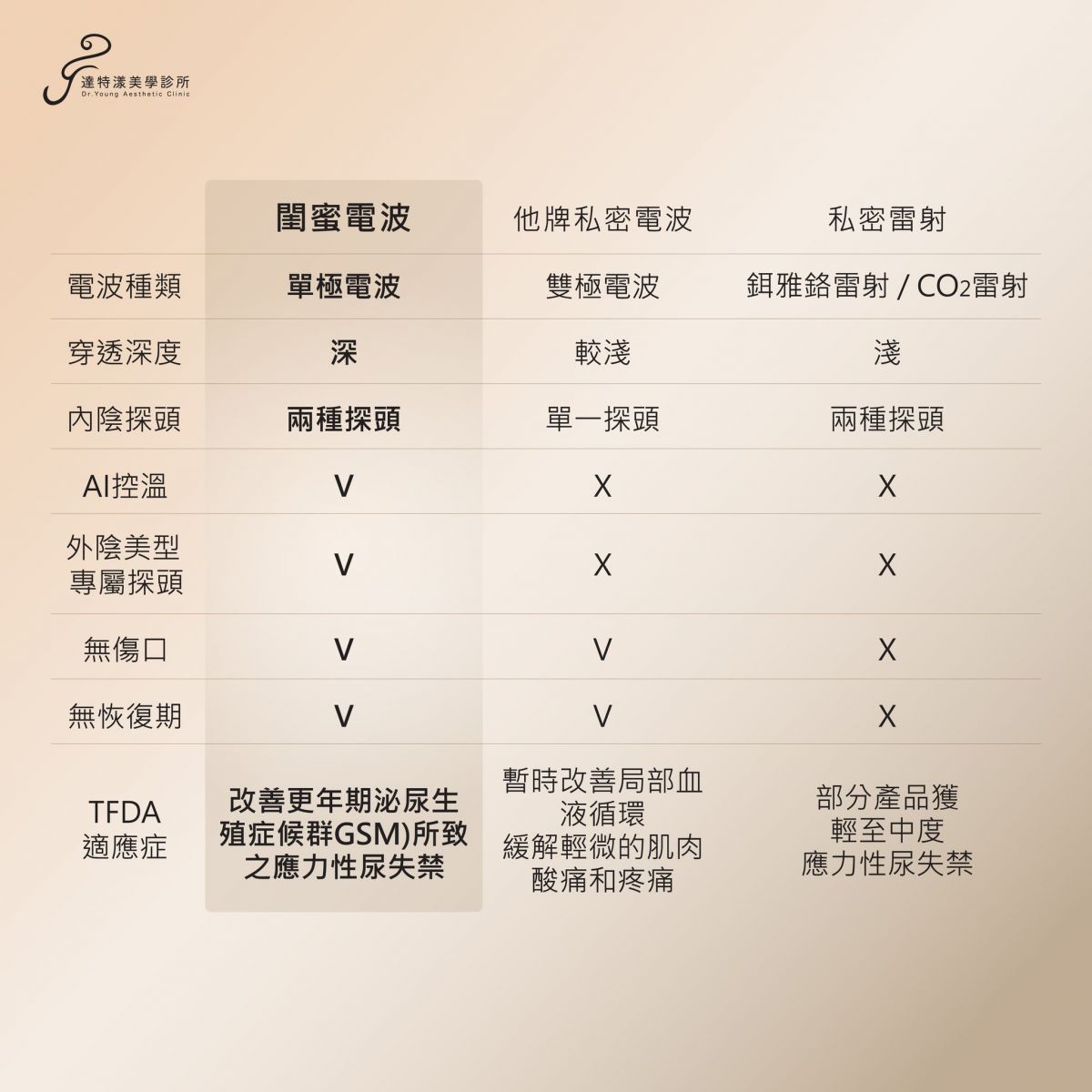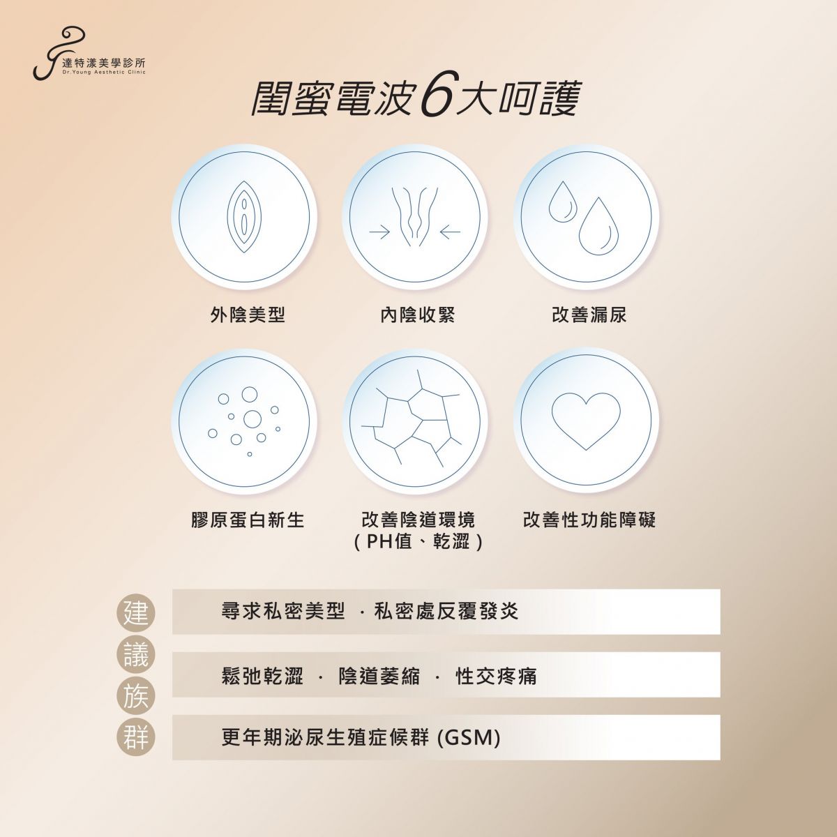 誰會遇到私密處困擾?不論是輕熟女、熟齡女性、更年期族群,甚至是產後媽媽,都可能經歷:陰部乾澀、痕癢或疼痛性交疼痛或性滿足感下降陰唇外露、鬆弛或色素沉澱分泌物增多、有異味、感染反覆尿滲或漏尿等盆底功能下降