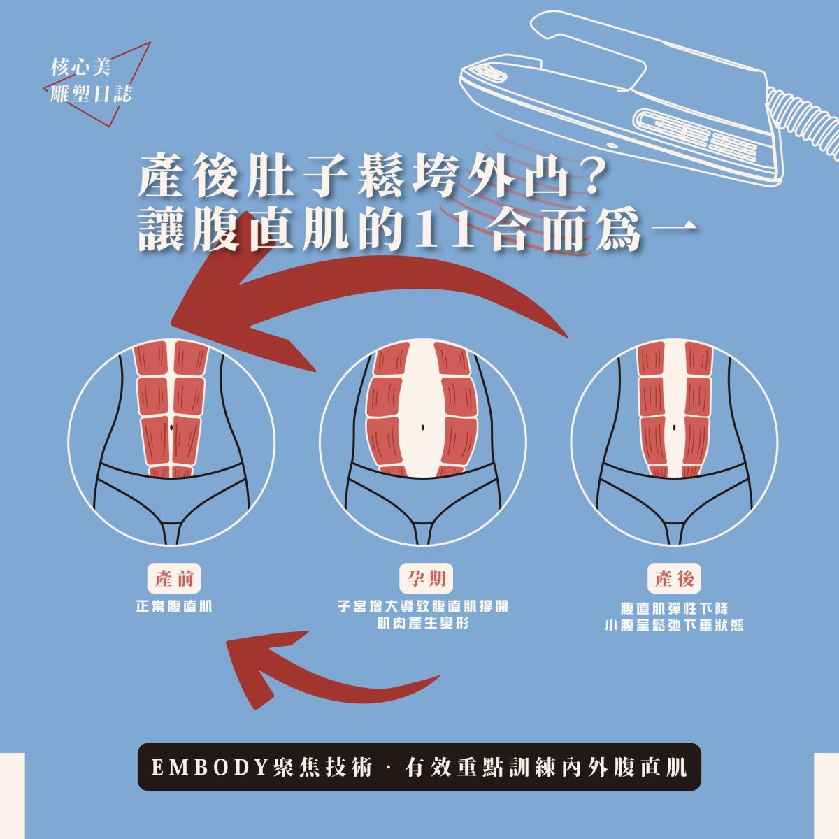 想要快速恢復產後體態,EMBODY核心美力是完美的增肌救星