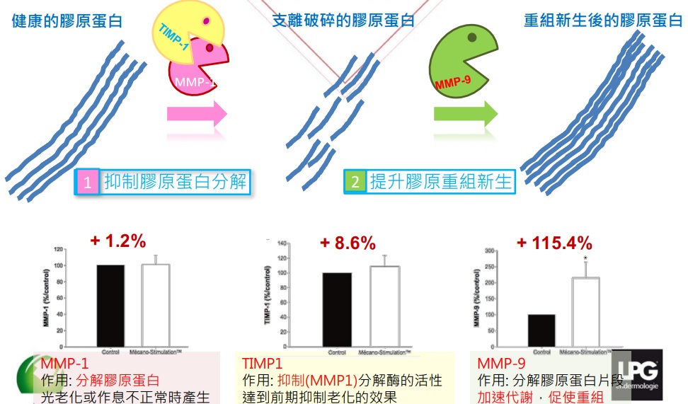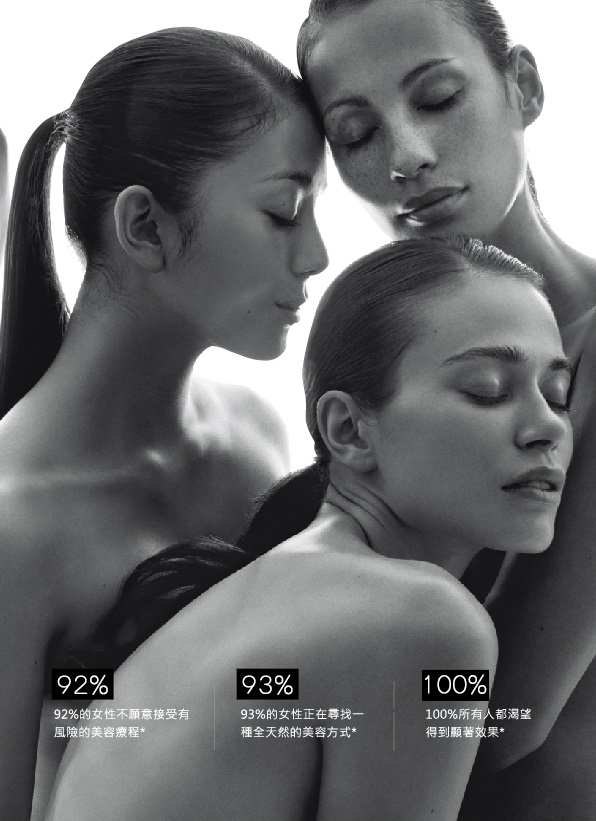 •促進體內自然生成膠原蛋白、彈力纖維和玻尿酸,使真皮層組織重現緻密、恢復豐盈。