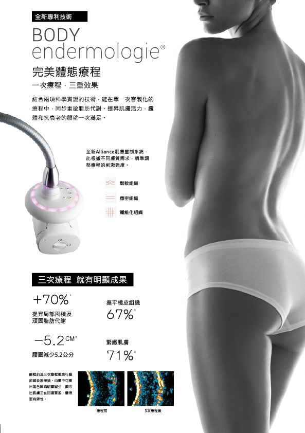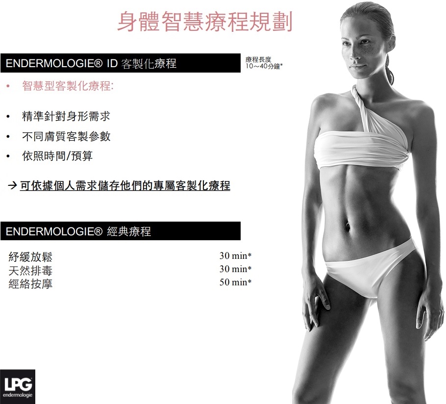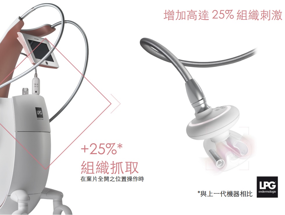 全新的身體endermologie專利,讓LPG的獨家技術發揮最大效果,給予肌膚最強效最快速的刺激。
