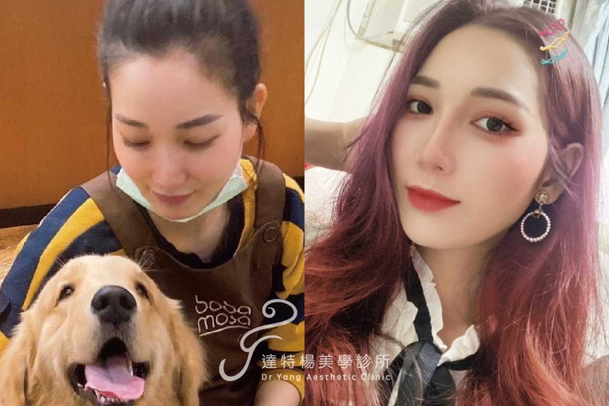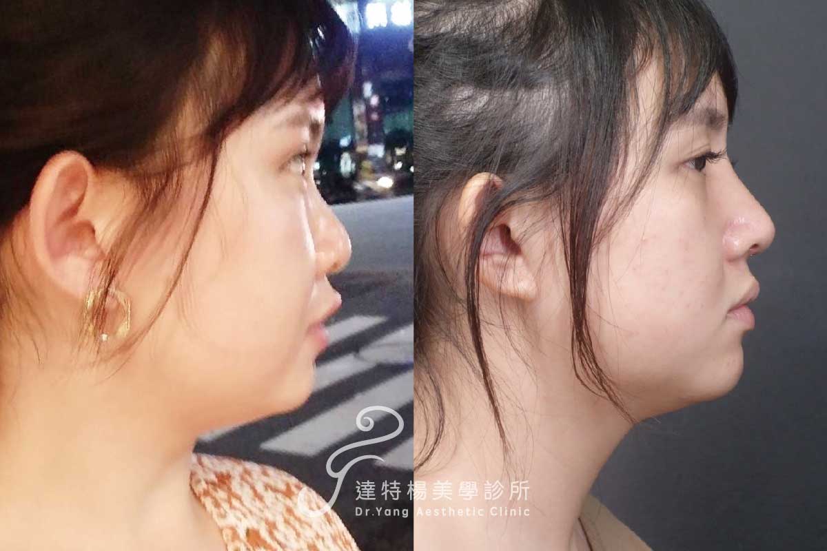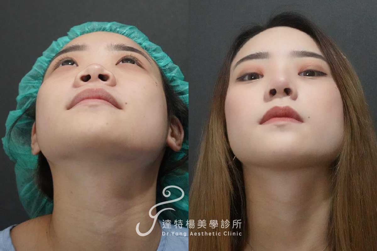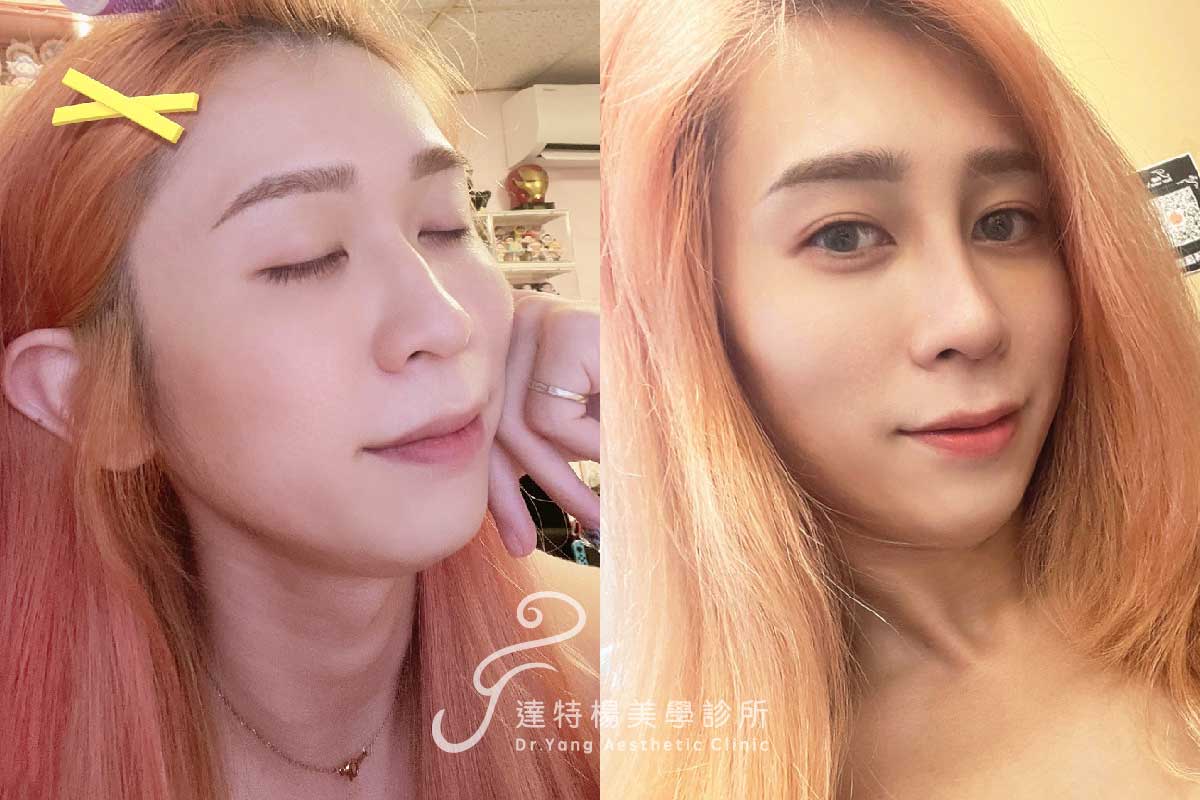 這位美眉透過三段式隆鼻改善了鼻柱不順暢的問題,原先的鼻型讓美眉看起來比較剛烈,三段式隆鼻手術(又稱為複合式、結構式隆鼻),透過假體或自肋墊高延長鼻梁,再取適合的耳軟骨來撐起鼻頭的部分,讓鼻尖能更好的塑形也能有保護鼻頭不被鼻模刺穿的風險,延長鼻中膈軟骨的部分,讓鼻型更加挺拔。三段式隆鼻手術過程比較繁瑣且環環相扣,非常考驗醫師的技術及美感,全方位的考量才能朔造出客製化的理想鼻型。