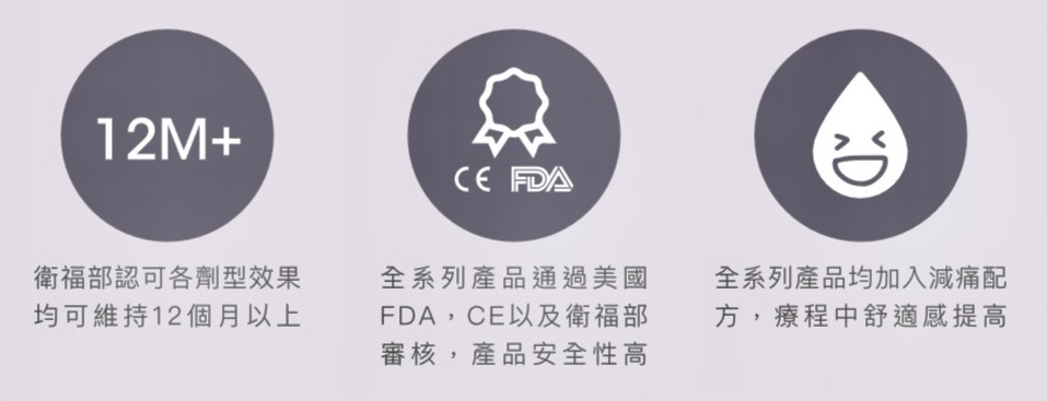 *本宣傳名稱與仿單不同,部份仿單核准適應症外的使用介紹,或口語化供民眾理解,僅供參考,正式療程、儀器名稱、效果、適應症、禁忌症等,均為醫師親自說明。