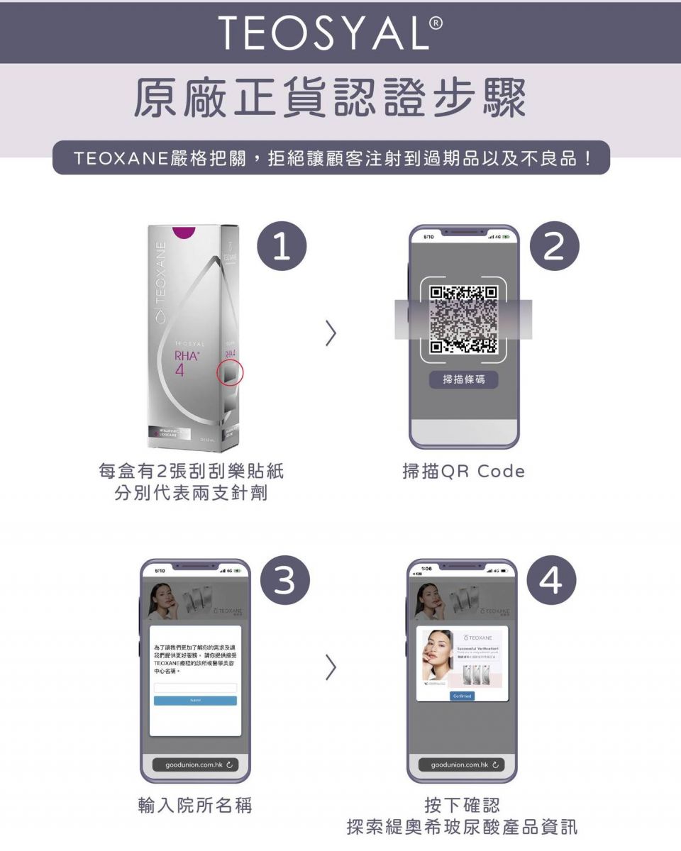 美麗特點除了經過美國FDA認證Preserved Network TM專利技術,保留天然100%原長鏈結構之外,在台灣也經過衛福部認證可達12個月以上,而Teoxane緹奧希2.3.4號,更進一步能在歲月流失臉部上,分別使用在不同層次有淺層、深層、深淺層,針對臉部、唇部去設計的一個【動態玻尿酸】