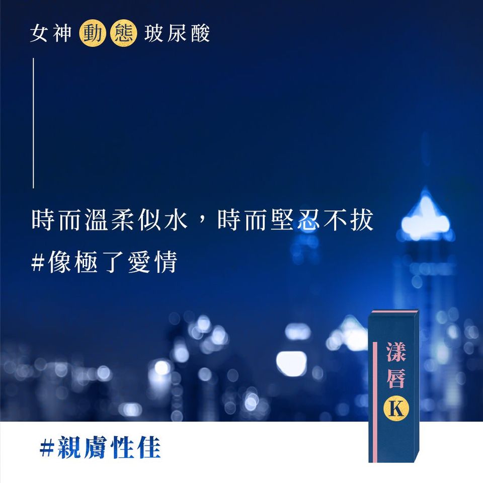 無論你是哪一種,自己的命運自己掌握 女神〔動態〕玻尿酸 漾唇K劑型 獨特柔韌型膠體自然塑型,與肌膚緊密貼合 高拉伸力輕鬆營造超性感的嘟嘟感 效果長達近2年,女神美唇讓你動人!