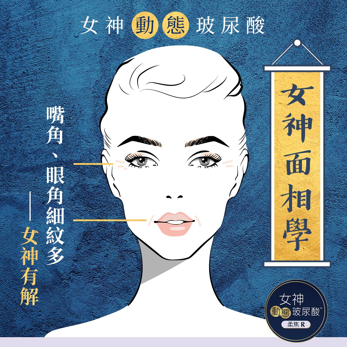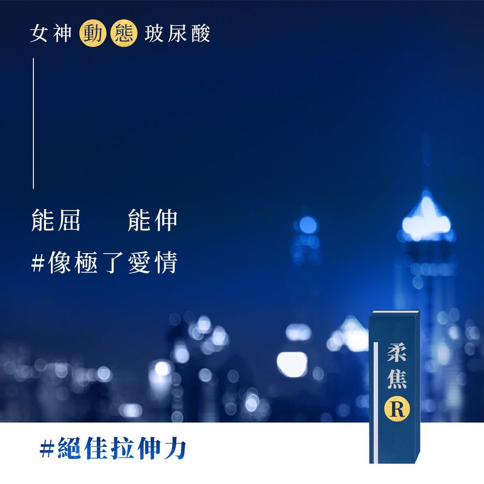 不怕!女神〔動態〕玻尿酸為你撐腰! 柔焦R劑型 專門對付難搞的歲月痕跡 膠體柔韌服貼,一針有效率撫平線條 再現0痕美麗臉蛋,輕鬆隱藏實際肌齡