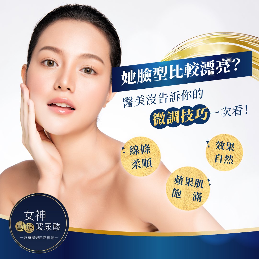 同樣想進廠變美 為什麼她的臉型就是比較漂亮? 醫美沒告訴妳的微調技巧一次看 - 想要自然、無痕的修修臉 選擇能夠柔順、服貼、溫柔支撐的產品很重要 為您介紹眾多人氣醫美醫師的新寵: 女神〔動態〕玻尿酸 - 擁有獨家「動態平衡優化技術」 妳長久一來想好好調整那些地方: 隨著歲月,凹陷的無神雙頰 流失水分,不再水嫩的肌膚 因為太薄不能嘟嘟誘惑的唇 不夠立體無法像混血美女的五官 這次終於能毫無違和感的變美了 - 不想進廠徒勞無功? 想要線條柔順、蘋果肌飽滿、效果自然 就在進廠前對醫師說出關鍵字 〔女神動態玻尿酸〕吧