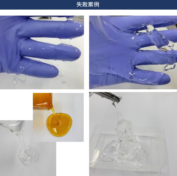 通過FHL獨特的DIAMOLD Technique技術,它形成了一個恆定且均勻的橋樑,減緩了內部分解並顯著提高了持續時間。 以下照片可以確認交聯的成功和失敗事例。交聯工藝是使液態HA成為固體型態的重要工藝之一,交聯劑的使用量、時間和溫度對品質影響很大。