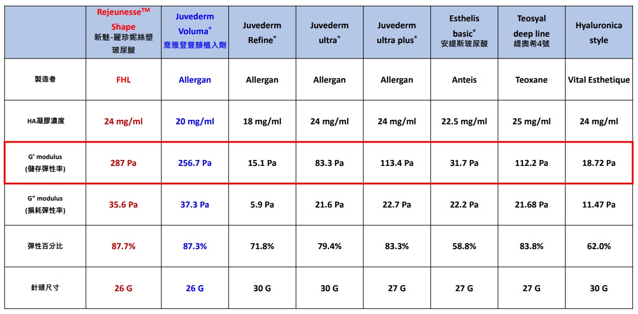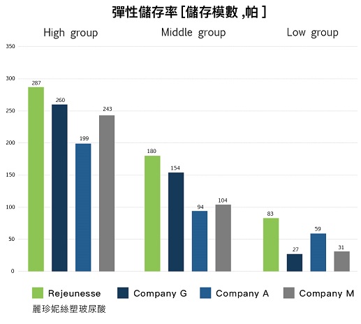 優異的黏彈性,是產品質量的關鍵決定因素 我們的三種單相凝膠型HA的區別在於儲能模量和彈性值;這三個產品都能表現出與競爭對手相似或優於競爭對手的黏彈性