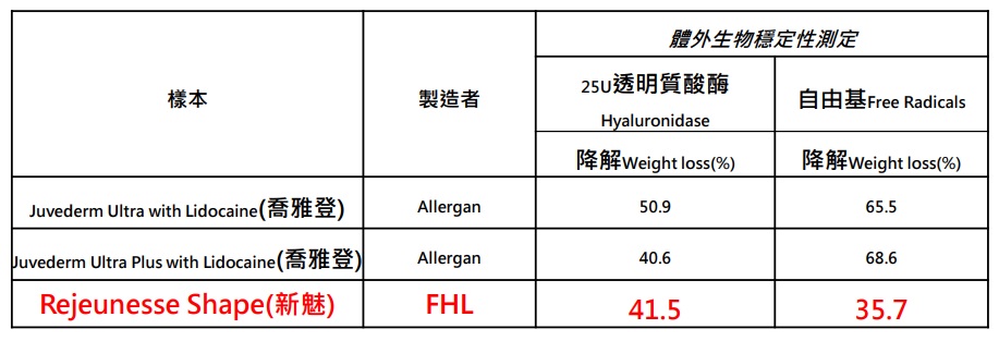FHL專有技術—新魅-麗珍妮絲塑玻尿酸 BDDE 交聯劑水平低於檢測線