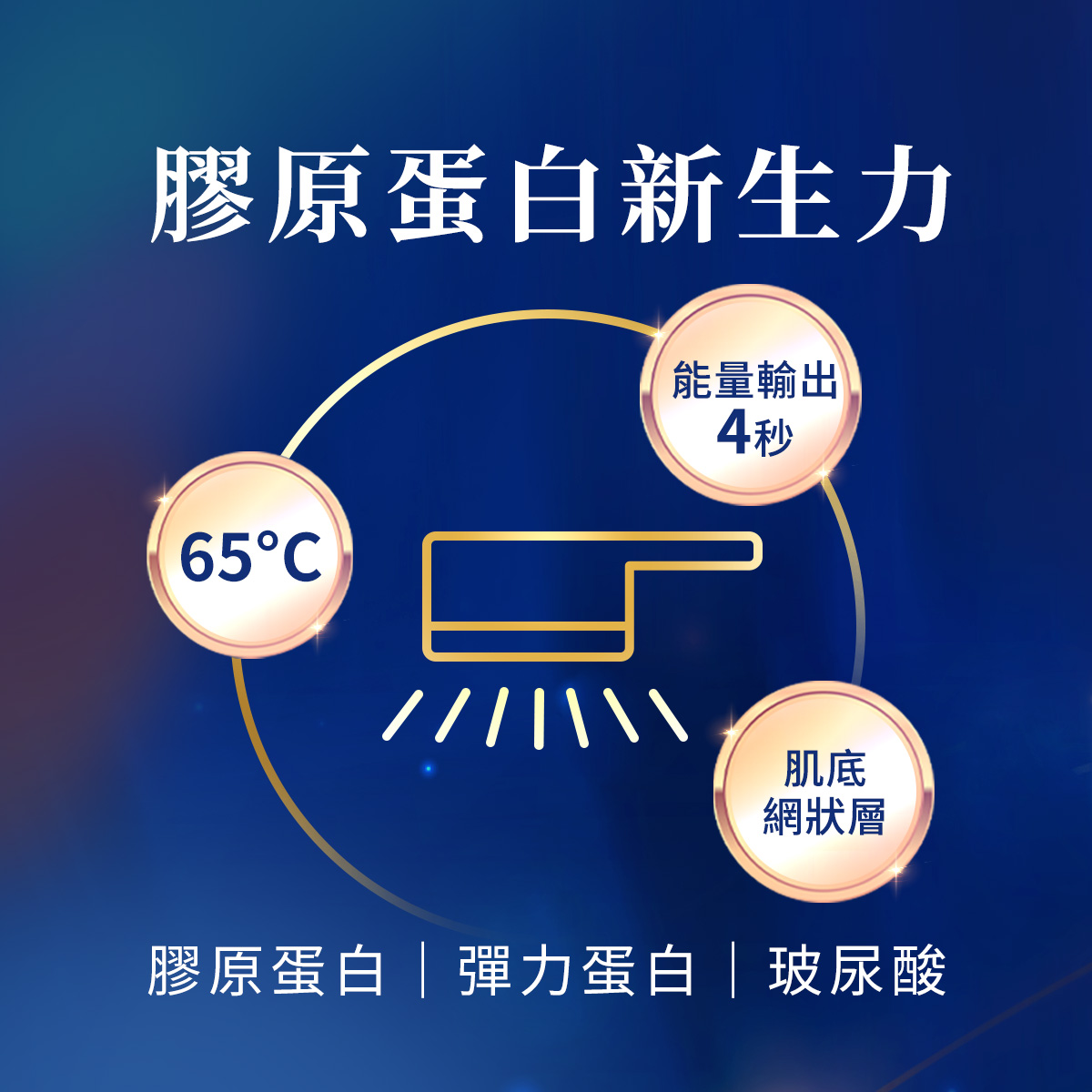 黃金溫度搭配4秒能量輸出,新生膠原蛋白、彈力蛋白和玻尿酸