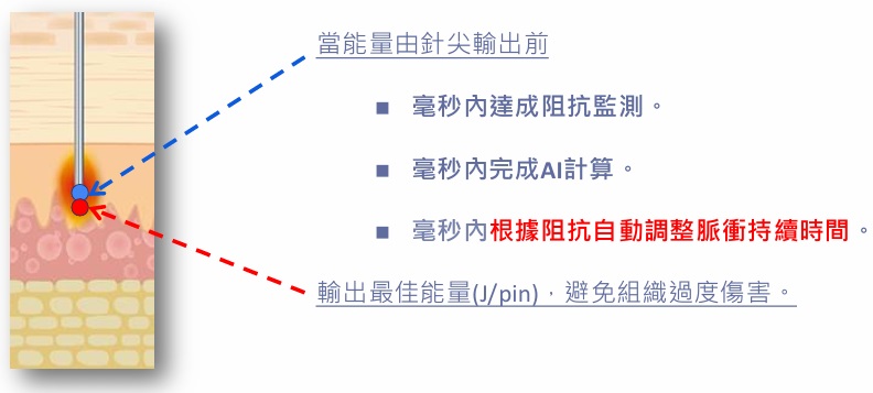 即時阻抗監測回饋,AI智能自動調整能量脈衝。