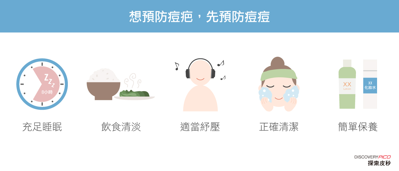 充足睡眠/飲食清淡/適當紓壓/正確清潔/簡單保養