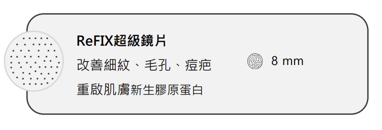 藉由ReFIX超級鏡片的聚焦科技,探索皮秒的能量可被放大24倍,且穿透深度直達2mm,改善膚質如虎添翼。