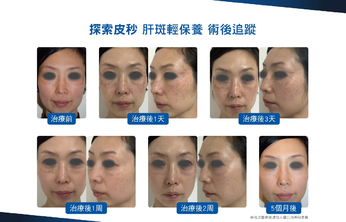 A:在治療後肝斑區域可能會呈現些微泛紅的狀況,請按照醫師建議方式照護。