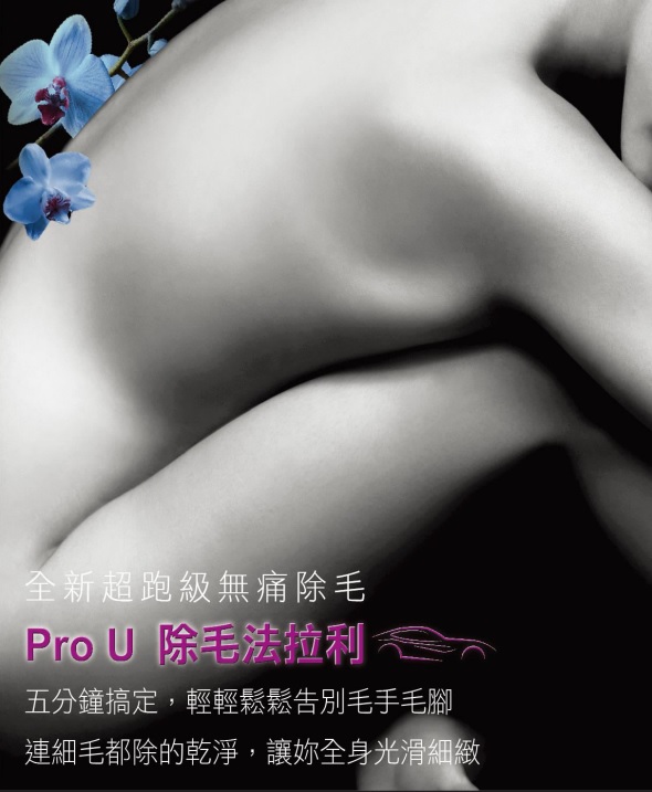 Pro U ( 俗稱透白機、法拉利除毛除斑 ),亞歷山大雷射,具備「可調式脈衝時間」功能,可治療各種色素斑、老人斑、雀斑、痘疤、曬斑、肝斑。