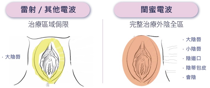 外陰會有立即澎潤緊實效果,內陰則緊實和包覆度增加,建議療程後1-3個月評估內外陰症狀改善。