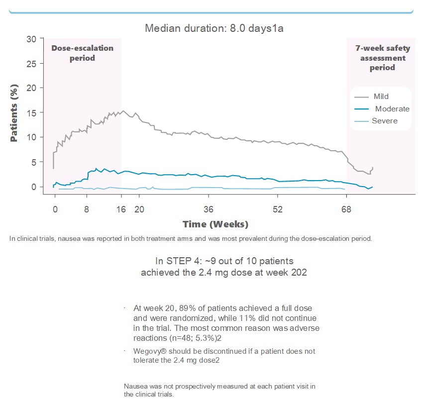 最常發生噁心的不良反應並未導致永久停用Wegovy®