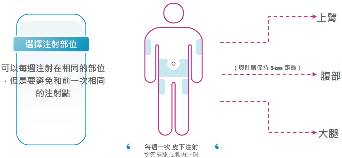 可改變每週注射的日期,但兩次注射之間應至少相隔 3 天 (超過 72 小時)。