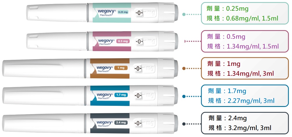Wegovy®(semaglutide)在台灣共上市五種劑量規格